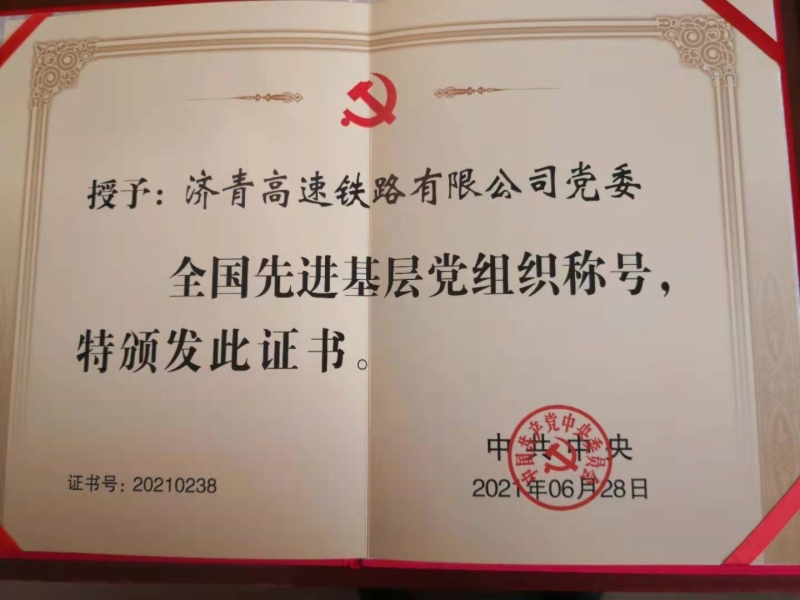 6月28日,全国“两优一先”表彰大会在北京人民大会堂举行。济青高速铁路有限公司党委被评为全国先进基层党组织,这是今年山东省国资系统唯一一个获此殊荣的基层党组织。成年人电影 党委委员、副总经理,济青高铁公司党委书记、董事长杨俊泉参加了表彰大会并领取了证书和奖牌。