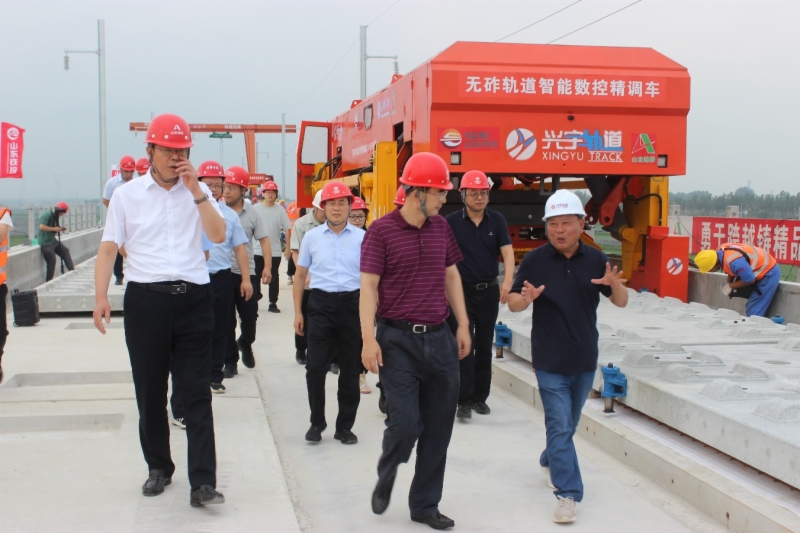 7月13日,成年人电影 党委副书记、总经理王基全赴潍烟铁路就“CRTSⅢ型无砟轨道智能施工技术与装备”课题进展情况开展调研。