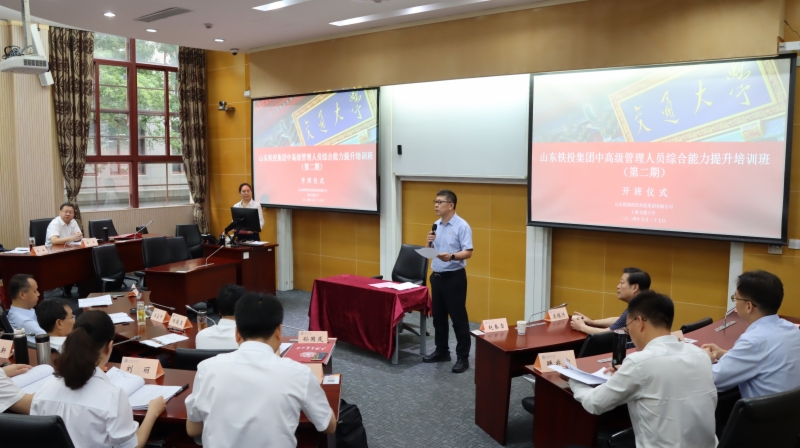 上海交通大学干部教育学院副院长李绿涛在开班仪式上致辞,对参训学员表示热烈欢迎,并介绍了上海交通大学的校况和课程安排等情况。集团党委委员、副总经理赵春雷宣布开班,并要求全体学员倡树务实学风,以学深悟透提高干事本领,以担当作为促进干事创业,对标先进开阔思维视野,以管理素质提升促进集团高质量发展。