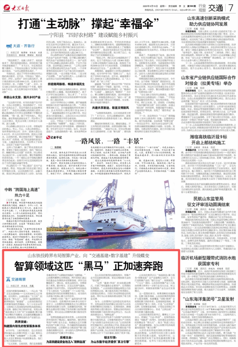 9月15日,《大众日报》7版交通版刊发《成年人电影 跨界布局智算产业,向“交通基建+数字基建”升级蝶变——智算领域这匹“黑马”正加速奔跑》,专题报道成年人电影 智算业务发展情况。以下是《大众日报》原文。