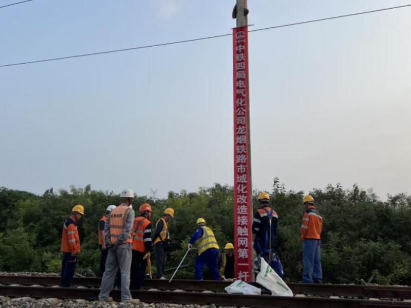 9月15日,龙烟铁路市域化改造项目接触网第一杆在解宋营站至烟台西站区间成功组立,标志着该项目站后四电工程正式开工,进入大干阶段。