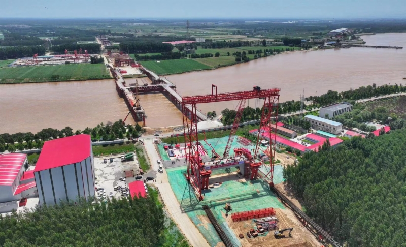 当前,黄河已进入主汛期,且正值上游小浪底水库调水调沙,桥位处水位高、流速大,最大流量超3900立方米/秒。在钢梁架设过程中,面对汛期对现场施工管理的影响,参建单位努力克服高温天气、施工空间有限、施工工艺复杂等难点,现场通过智能监控、自动预警及数字化控制,实时监测主梁拼装线型、辅助设施受力和大型起吊设备安全状态,实现钢梁精准、安全、高效吊装架设。