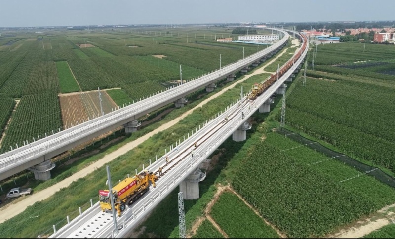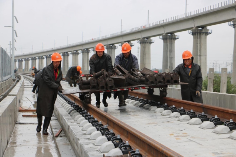 为确保铺轨任务顺利进行,成年人电影 潍烟高铁公司精心组织,各参建单位紧密配合,铺轨施工单位中铁一局克服邻近营业线施工安全风险高、穿越龙烟线运输距离长、上跨潍莱线“天窗点”作业有限空间及线下施工条件限制等诸多困难和挑战,开展昼夜双班施工,全体人员以“保竣工 促进度 筑精品”劳动竞赛活动为契机,战高温、冒骤雨、抢工期,大干60天,提前完成双线340铺轨公里施工任务,创造了单日双班铺轨12.5公里的“潍烟速度”。