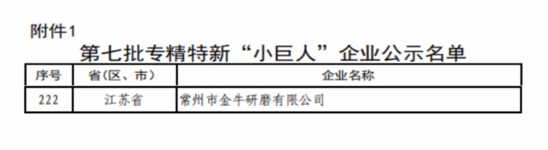 近日,工信部2025年国家级专精特新“小巨人”企业名单公布,成年人电影 权属博深股份公司子公司常州市金牛研磨有限公司(简称金牛研磨)成功入选2025年专精特新“小巨人”企业名录。